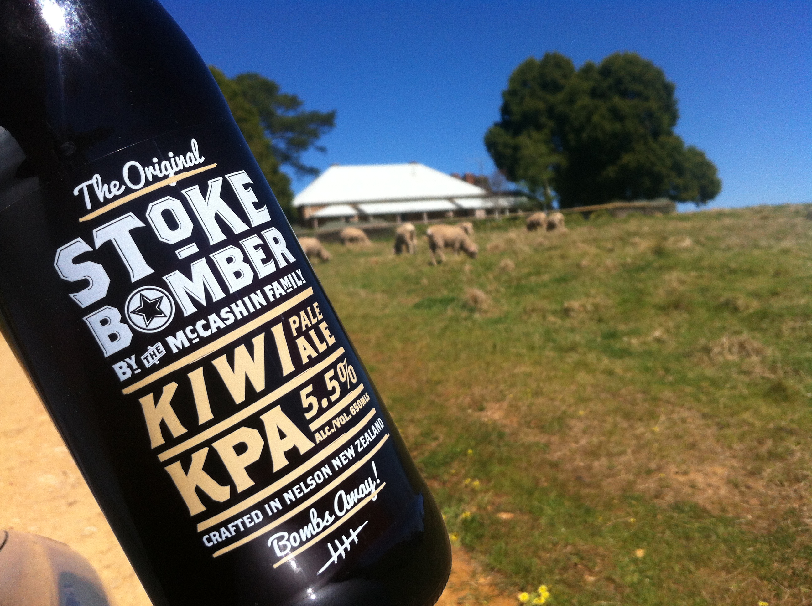 I always try and take up at least one new beer – partly for the beerporn and partly to share something new with the lads. Now, as you look at the beerporn and look at the home of the new beer, you might think I’m taking the mickey – but the farm we were on was a fair dinkum sheep farm. There were literally thousands of them roaming the place. We’ve written about the McCashin family before and how they’ve taken back over their brewery. Stoke Bomber – a Kiwi Pale Ale – is their latest offering and it is a bloody ripper. This is a beer in the style of an American Pale Ale as opposed to an IPA. Wonderful amber colour and a fabulously bright, hoppy bite. What makes it a genuinely Kiwi Pale Ale is the use of a relatively new hop variety from New Zealand called Wai-iti. You’ve got to love the 650ml bottle as well. I haven’t seen any of the Stoke beers on tap – I’d love to have this on tap on a sun drenched deck.