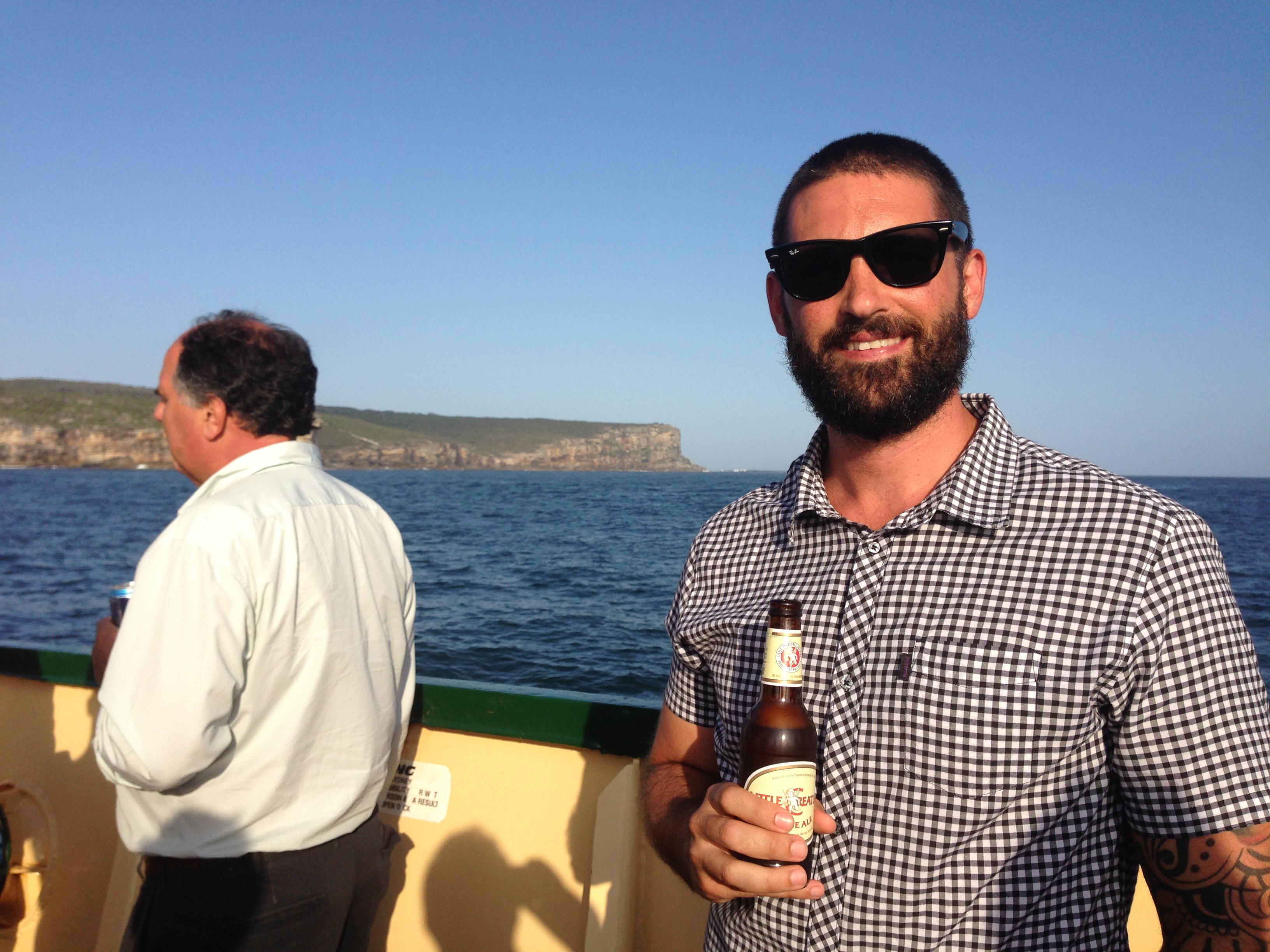 Great arvo on the BotF with some real beer people joining illiards and bladdamasta out the back. Always great when Sydney turns on an afternoon that makes sunscreen suppliers happy. Our inductee this evening has been leading the good fight for craft beer for a long time. That fight has been waged in a part of Sydney foreign to BotF and their insular peninsula origins and we were more than happy to give Dan (aka BeerSnobs) a look at the northern beaches take. A trip to Blackets, a trip to 4 Pines and a trip to Murrays was a good start.