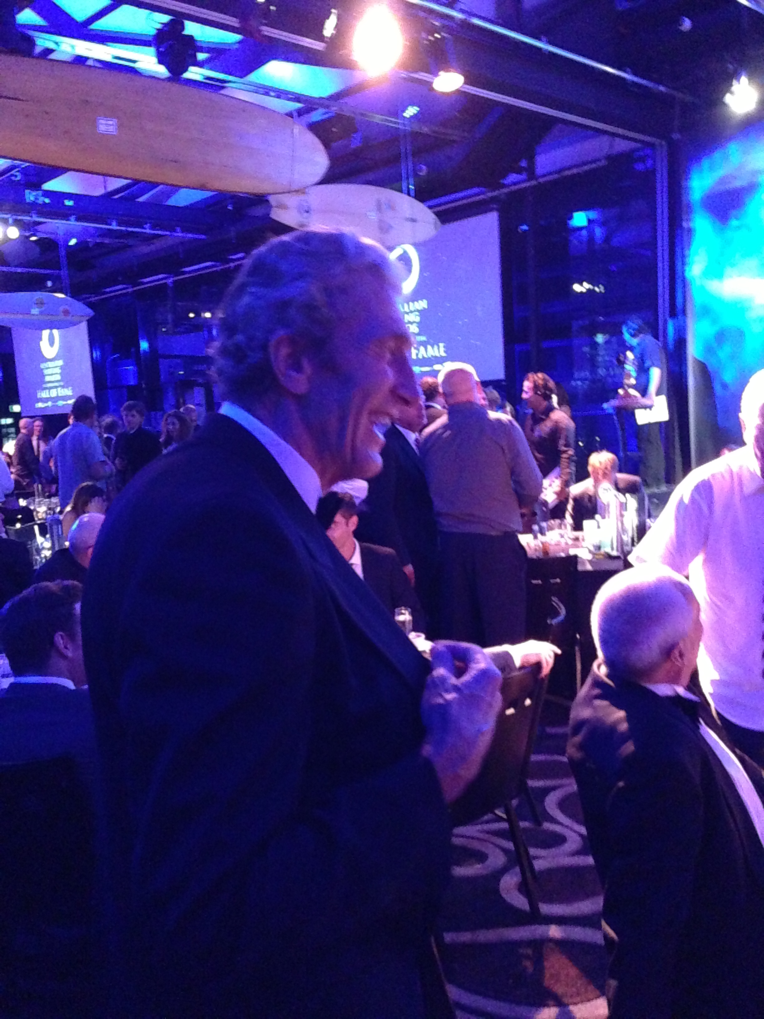 Have an awards night, and there’s bound to be a pollie lurking here and there. No exception on this night. Julia Gillard appeared on the tellie and gave a good natured but daggy speech about the importance of surfing and then tied that into climate change. Wayne Swan, whose had a fair share of political wipeouts of late actually spoke with some surfing cred and generated some rare (for him) bon homie. They’re a tolerant lot, the surfing crowd, and they good naturedly accepted the politcal intrusion on their evening and also tolerated blokes like my mate getting their photos taken with them. Stephanie Gilmour is a great surfer and an extremely nice person to boot. Just being around so many legends made the night. I heard of the amazing Peter Drouyn story, but to actually see his alter-(New)-ego Westerly Windina made that quite hard to believe story quite real.