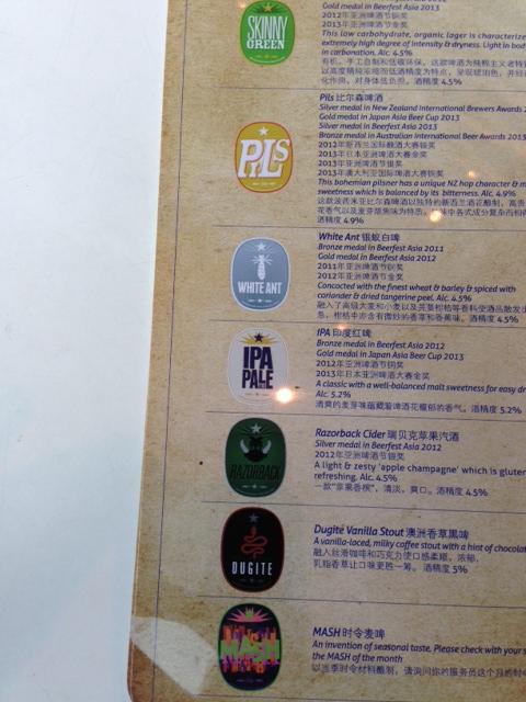 Once again Mash was the clear standout. A wonderfully citrusy flavoured ale that lingers with the partaker well after sampling. It is not for the light of heart though. Our Chinese friends who joined us are more comfortable with watery but flavorsome beers available in China were physically shaken by the oral delights of Mash.