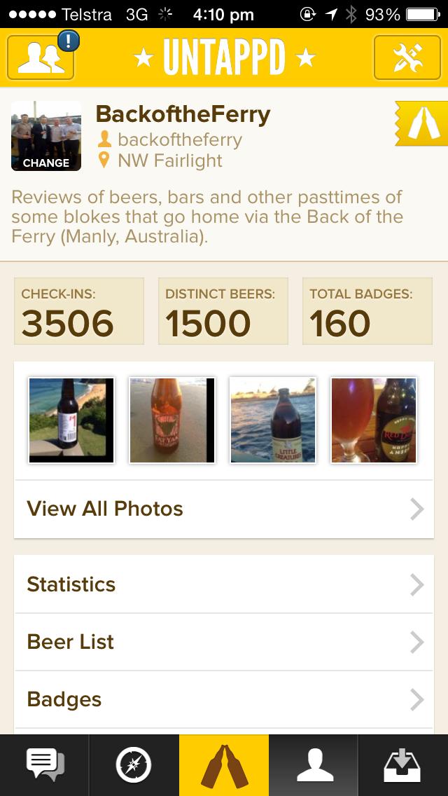 | The app of choice for the backoftheferry is @untappd. The botf correspondents celebrate with relish the various badges the app rewards us for enjoying our favourite beverage but none more than the Uniques*.