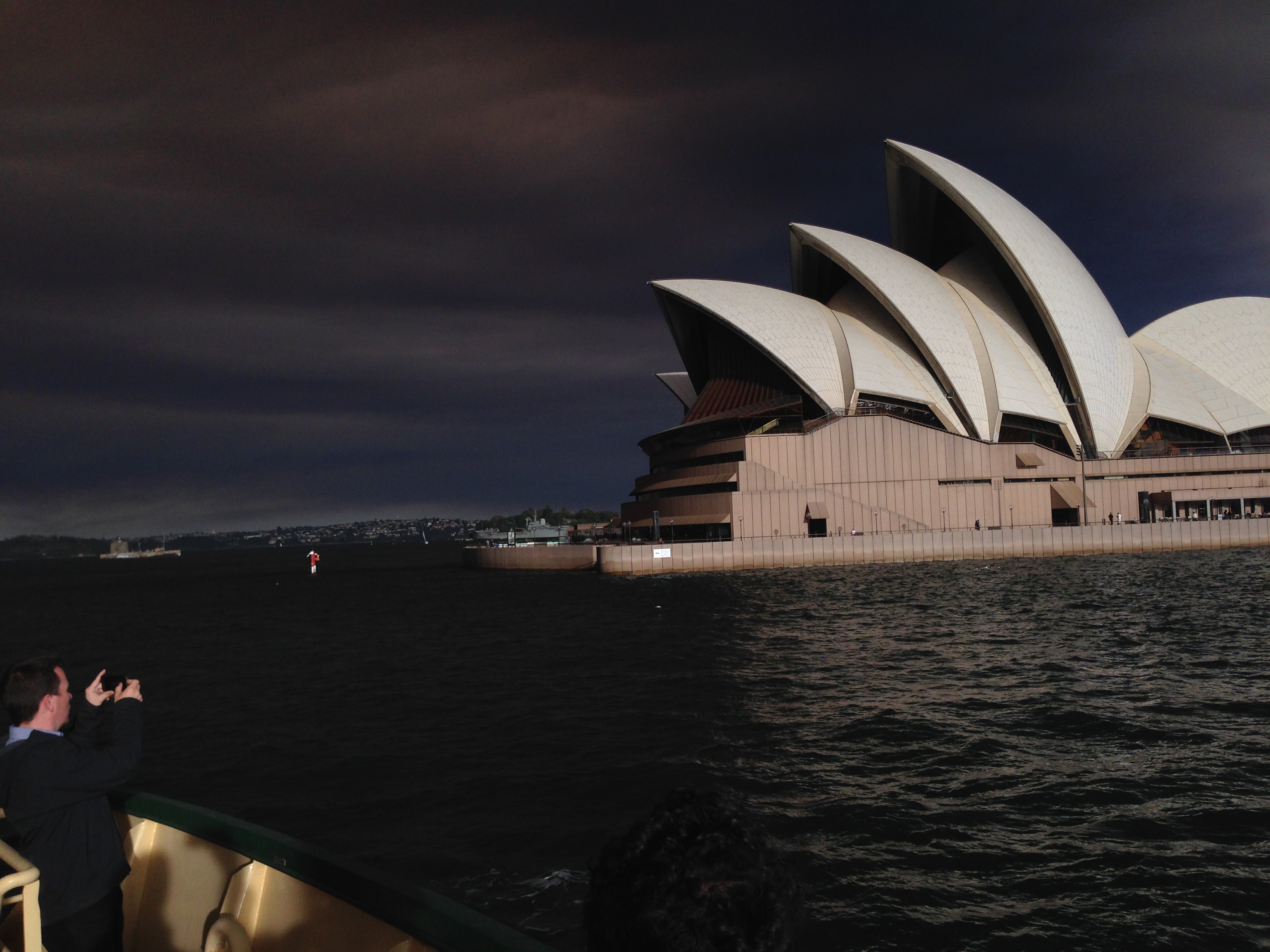 By the time the old crew had assembled on the 6pm ferry, the freakish wall of purple cloud had started to move north east and was being replaced by clear blue. With the sun shining low from the west and the skies immediately above still a swirl of purple and grey, Sydney Harbour took an eerie hue. All passengers were mesmerised by the sights as familiar silhouettes took on different appearances with such unique backdrops.