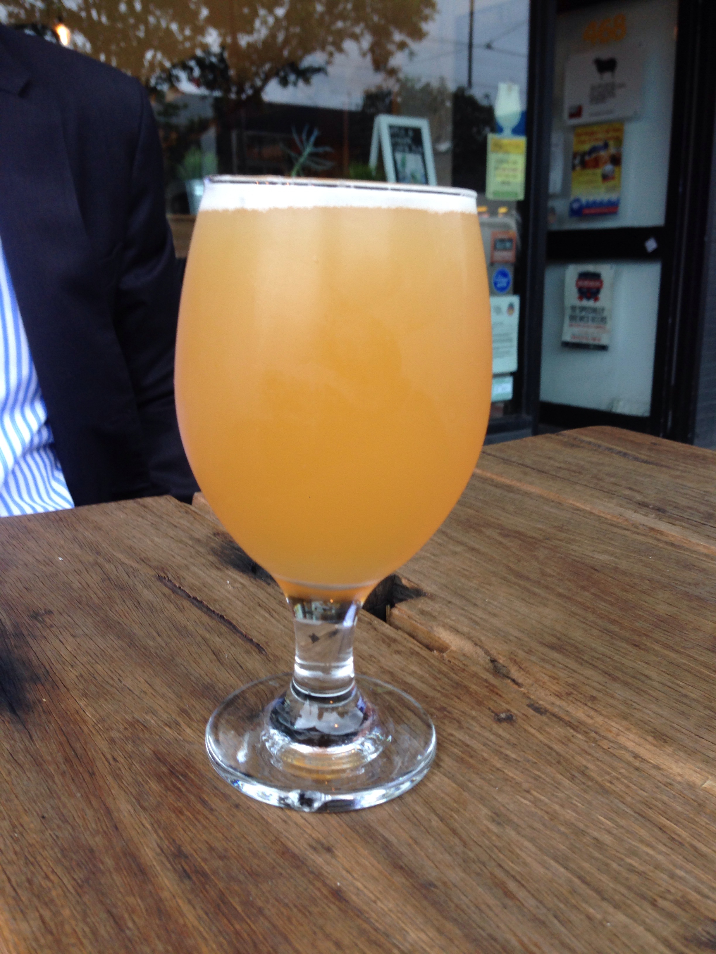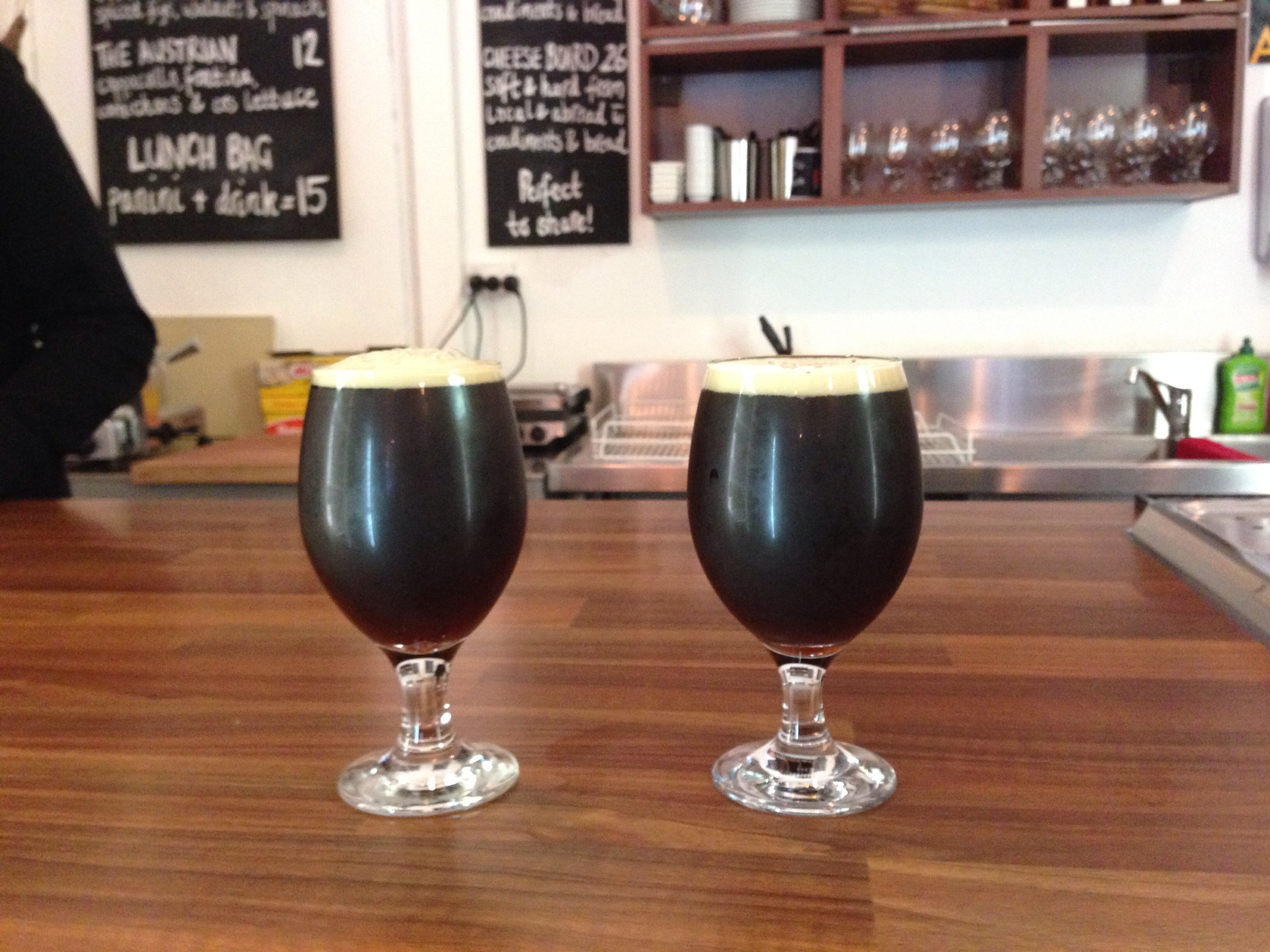 His first choice was inspired. I must admit when I hopped out of the cab, I was heading into a place called the Bouzy Rogue (which looks worthy of a visit in its own right), but instead we headed into what is essentially a bottle shop with a few tables to enjoy a sample or two. A beer store and café as Slow Beer’s website proclaims. Slow Beer’s shelves are overwhelming – I’ll be back another time to give these a thorough perusing – for now the taps. Slow Beer offers 4 taps, from which you can have a glass or fill up a growler. I’ve had a couple of great less than 3%ers lately. Boneyard’s Red Ale was a fabulous drop that I had recently at Mrs Parmas. As good as Boneyard was, To Øl’s Sundancer was incredible. Sharp, opaque, fresh and really intriguing at only 2.7%. To Øl means two beers in Danish and is run by two students of Mikkel Borg Bjergsø, one of the founders of Mikkeller. Like Mikkeller, To Øl is a gypsy brewer and Sundancer is actually made in Belgium. Bloody complicated, but bloody good.