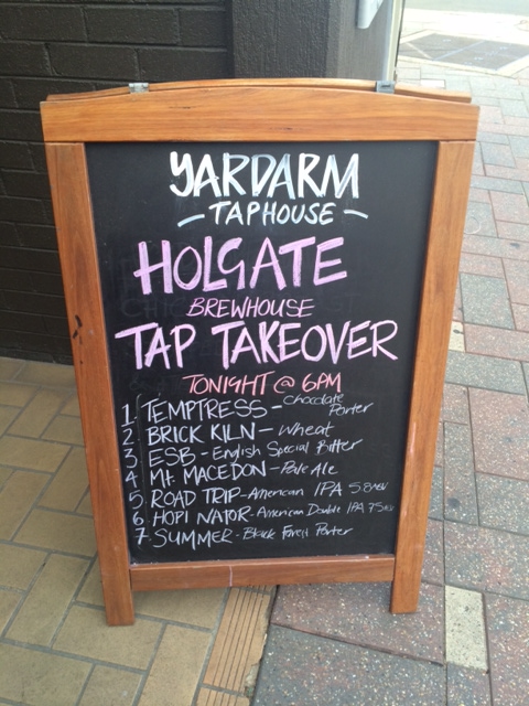 Last Wednesday night, two of your correspondents enjoyed an hour or so of beer heaven. The afternoon had started off in typical fashion, sharing post work bevvies with pommy_ch and lamb0 on the Back of the Ferry. Pommy_ch and lamb0 had to adjourn to their regular Wednesday darts match – but illiards and I had an appointment with the Yardarm Taphouse. For the last three weeks the Yardarm had been advertising a tap takeover by the Holgate Brewhouse. I’ve been fortunate to visit the Holgate Brewhouse in Woodend, Victoria but both visits were fleeting. Much more convenient that the Yardarm brings Holgate to Manly.