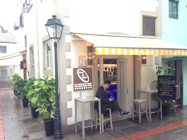 After doing the old part of Macau (which I’d seen in 2009), visiting a charming little fishing village which could be done in 30 minutes and surviving a 3 hour thunderstorm – I needed liquid refreshment. Search “Macau pubs” and most search engines tell you about the Old Taipa Taverna. Taipa is an old part of Macau on the southern land mass. There’s a racetrack and an old Portuguese village that has been reasonably preserved. It is a micro version of Old Macau without the churches. There’s a number of Portuguese restaurants and a couple of blocks of souvenir and craft shops across 3 or so blocks.