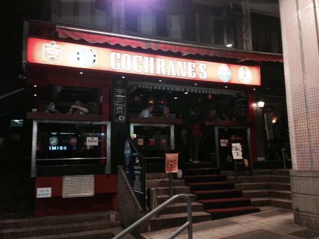 It was my last night in Hong Kong and I was wending my way through Central to pay my final respects to the Roundhouse (more on that later) when I stumbled across Cochrane’s. It’s on a pedestrian part of Cochrane Street between Wellington and Gage Streets. The place was packed tighter than a fat fellow’s sock and it was only that I was travelling solo that I was allowed in.