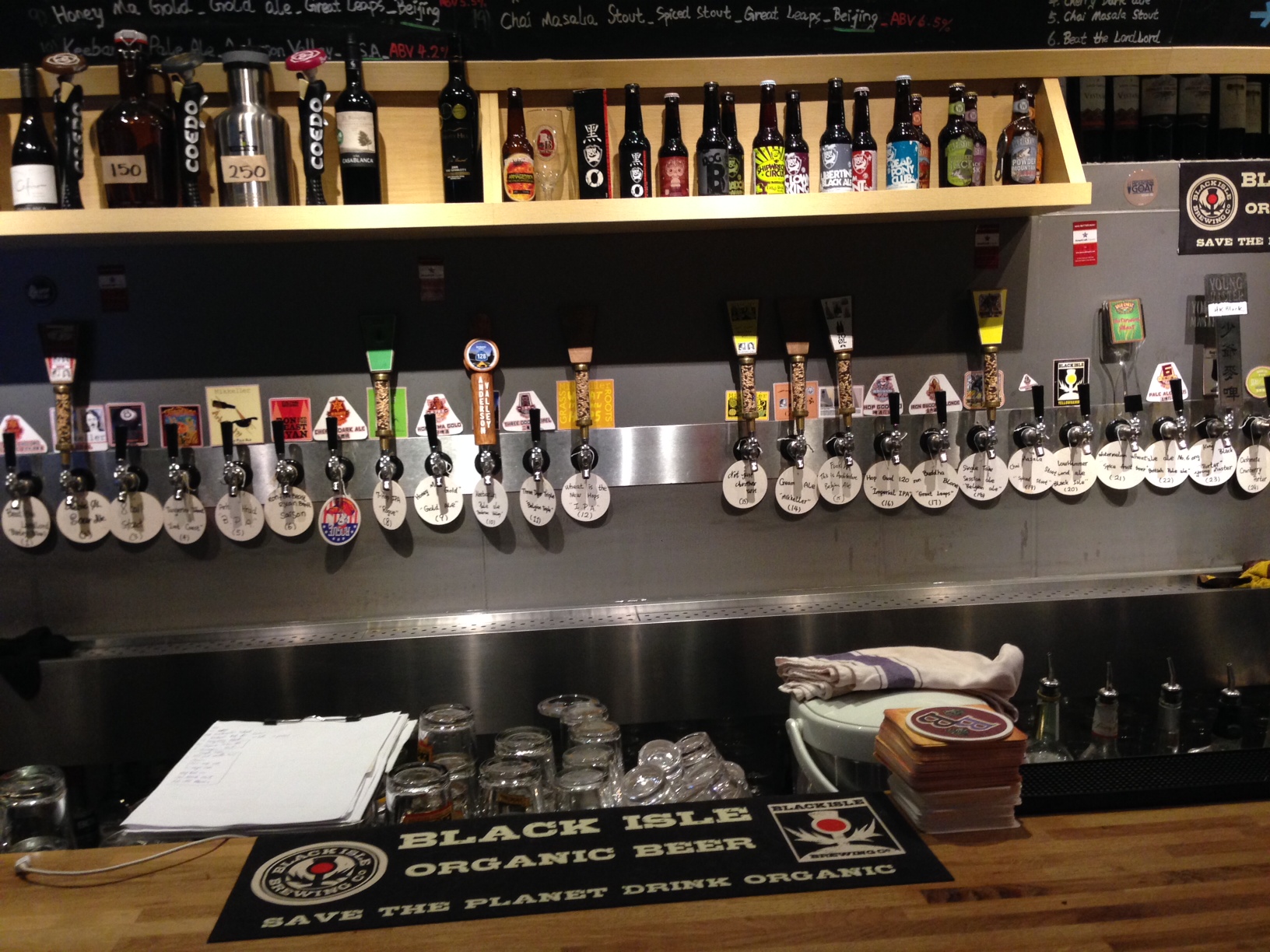 24 Taps – no lessI’d missed the visit to Hong Kong by Beijing’s Great Leap Brewing by a couple of days. As a result, the taps had no shortage of varieties from Beijing’s first and most prodigious craft brewer. There was everything from the flagship Pale Ale #6 to a Chai Masala Stout. American Brewers and the ubiquitous Mikkeller are also well represented on the tap range as well. In addition to a Chai Masala Stout, there’s also the weird and wonderful from Lost Coast Brewery with their Watermelon Wheat. The whole experience is very slick with the waitresses carrying iPads with the beer selection on them, but I prefer to read the lovingly maintained chalkboard and look at the tapheads. The Roundhouse will always be on my list if I visit Hong Kong. They do need to think about their merchandising approach. The t-shirts look great – but the XXL would have been tight on Kylie Minogue and $120HKD for a souvenir glass is a little ridiculous – particularly as you are paying $88HKD for a pint.