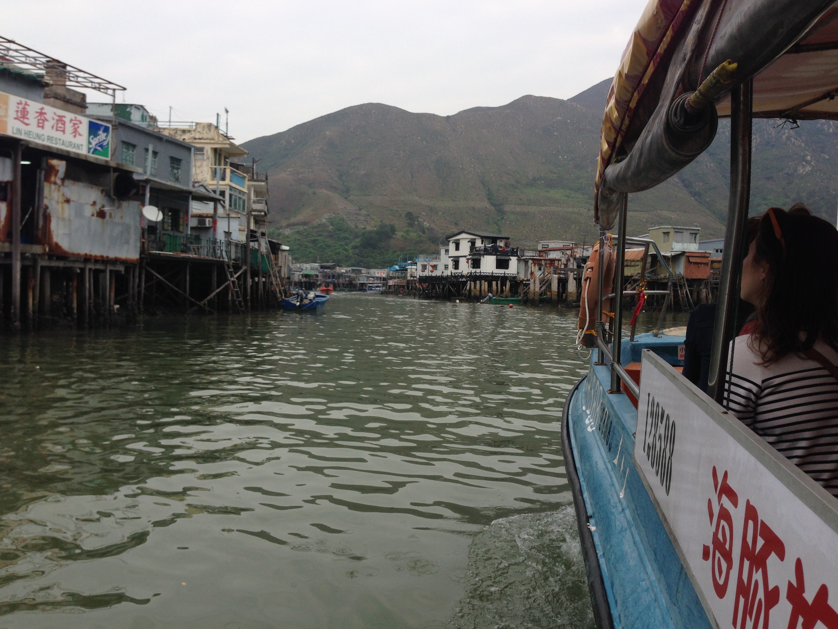 This latest trip to Hong Kong was my best yet. It was longest trip I’ve done, during the week I had great night time buddies supplemented by the local knowledge and I’d done some research to make days as a tourist pretty interesting. A highlight of the trip was a visit to the centuries old fishing village of Tai O, which on the far west of Lantau Island. Lantau Island is best known for the Big Buddha, its cable car Hong Kong Disneyland and that Hong Kong airport adjoins it. There’s plenty more to it than that. Despite the towering apartments of Tung Chung, the majority of Lantau Island is mountainous forested mountains with a number of beaches that apparently go off in the hotter weather. There’s a few villages and larger towns like Mui Wo and no shortage of Westerners live on Lantau and do the daily commute to Hong Kong Island. Despite its relatively isolated location Tai O is easily accessed by bus or taxi. Tai O is a village where a view of the water is key. There are tight little lanes, lined by restaurants, dried fish shops and souvenir shops. The smell of fish pervades the air. For $25HKD ($4ish aussie) a covered, elongated punt takes you up the river past the stilt houses and then out to sea to look for pink dolphins. You also see planes coming into land and the start of the Hong kong-Macau-Zhuhai road bridge. Despite being surrounded by the modernity, Tai O retains a lovely quiet charm.