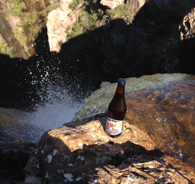 We carried a bottle of Mudgee Smokey Red with us. The beer label hyperbole had us salivating for what promised to be a full-bodied red. Tragedy befell us, however and due to a combination of being bobbed around on the bushwalk and possibly a faulty seam – the bottle burst at the bottom, spraying beer all over the car. I managed a couple of drops, but really to get to Mudgee again to pick up another. Fortunately the beer was indeed rich and the aroma that has developed in the car isn’t too bad.