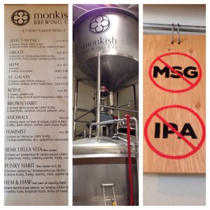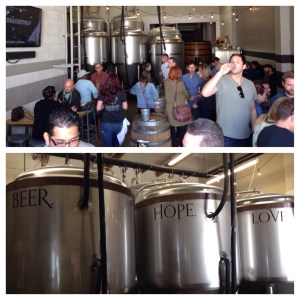 Our ability to hit and run was somewhat stymied by the crowds at brewery we visited. Both venues we saw were packed. Monkish Brewing was being like a kid in lolly shop. 11 brews on tap. Awesome set up with plenty of space in the brewery itself to have a sip. “Beer, Hope, Love” and plenty was being shown. We couldn’t dawdle so after a beautiful brown “Sepia”, we skedaddled.