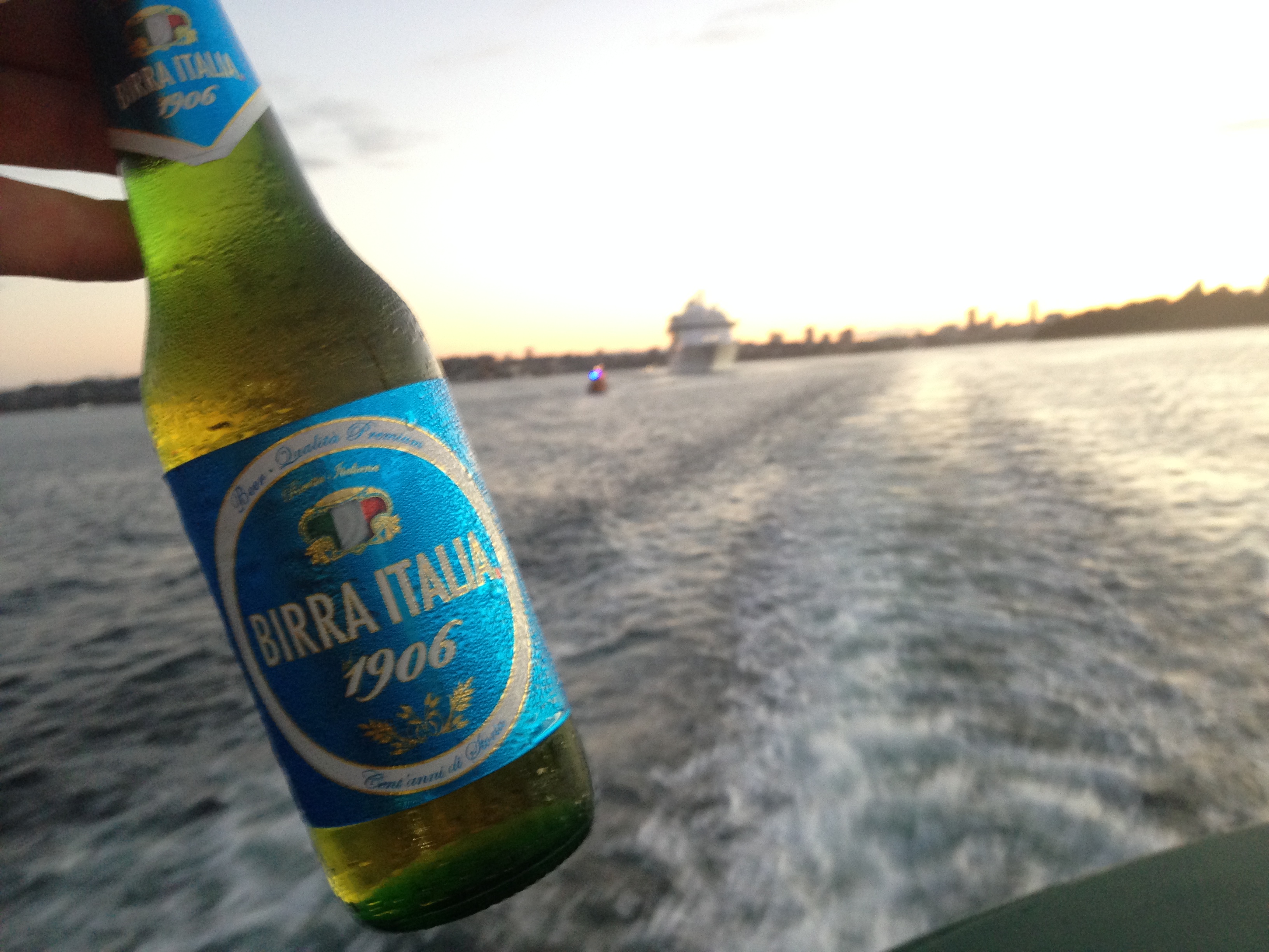 Whilst there’s never a bad time to be on the Back of the Ferry, twilight during Australian Eastern Daylight Savings Time is my favourite. This years AEDST season has been a ripper, with the ever increasing numbers of massive cruisers coming through the Heads, making journeys home even more enjoyable. Even Mr Liquor at Circular Quay has picked up his act with the introduction of the odd unique in 2015. His latest unique is typical Euro malt bomb from Italy. Birra Italia 1906, was first made in 1906 (funny that) in Milan. The brand declined after an earthquake caused the wells that fed the original brewery to relocate. A new owner and new brewery – Birra Castello S.p.A – emerged at the start of the century and this looks to be their flagship export.