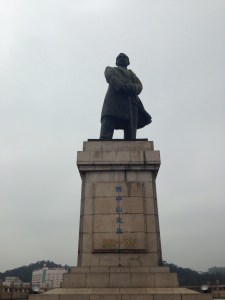 Named after Sun-Yat Sen’s family name to honour his birth in the city, Zhongshan is a modern city with not much of an old section that I love walking through. There are a couple of pedestrian streets with crumbling facades, but anything old has probably been knocked down. There’s numerous. tributes to Sun-Yat Sen, including a marvellous statue that looks down one of the main treeA few laoweis come to town and a number of the big hotel chains have some huge hotels here. I stayed in tallest – the Hilton, which is relatively cheap for the opulence. For me its highlight is the 59th floor Horizon Bar. If it wasn’t for the ubiquitous mist, the views would be amazing. They still weren’t bad and a Paulaner Hefe is an alright option at 38RMB.