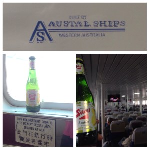A week’s work in Hong Kong means a weekend visit to China. Staying true to this blog’s origins I chose a city to start with that I could access via ferry. Zhongshan is 90 minutes from Kowloon, crossing the Pearl River Delta and heading up a river. Felt good being in an Australian made boat, but was disappointed not to be allowed outside. Even with the rain and mist it would have been fun.