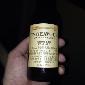 Haven’t visited Vintage Cellars at Wynyard lately, but pulled in tonight to be rewarded with a stubbie of Endeavour Vintage Beer Company’s 2014 Pale Ale, which BotF hasn’t tried. I haven’t met an Endeavour beer I didn’t like and this is no exception. Very drinkable Australian Pale, with a sweet edge (in a good way) to some solid lingering bitterness. Surprised to see we’ve only knocked half their range (if @Untappd is to be believed). A go to brand for me if there is nothing new on tap.