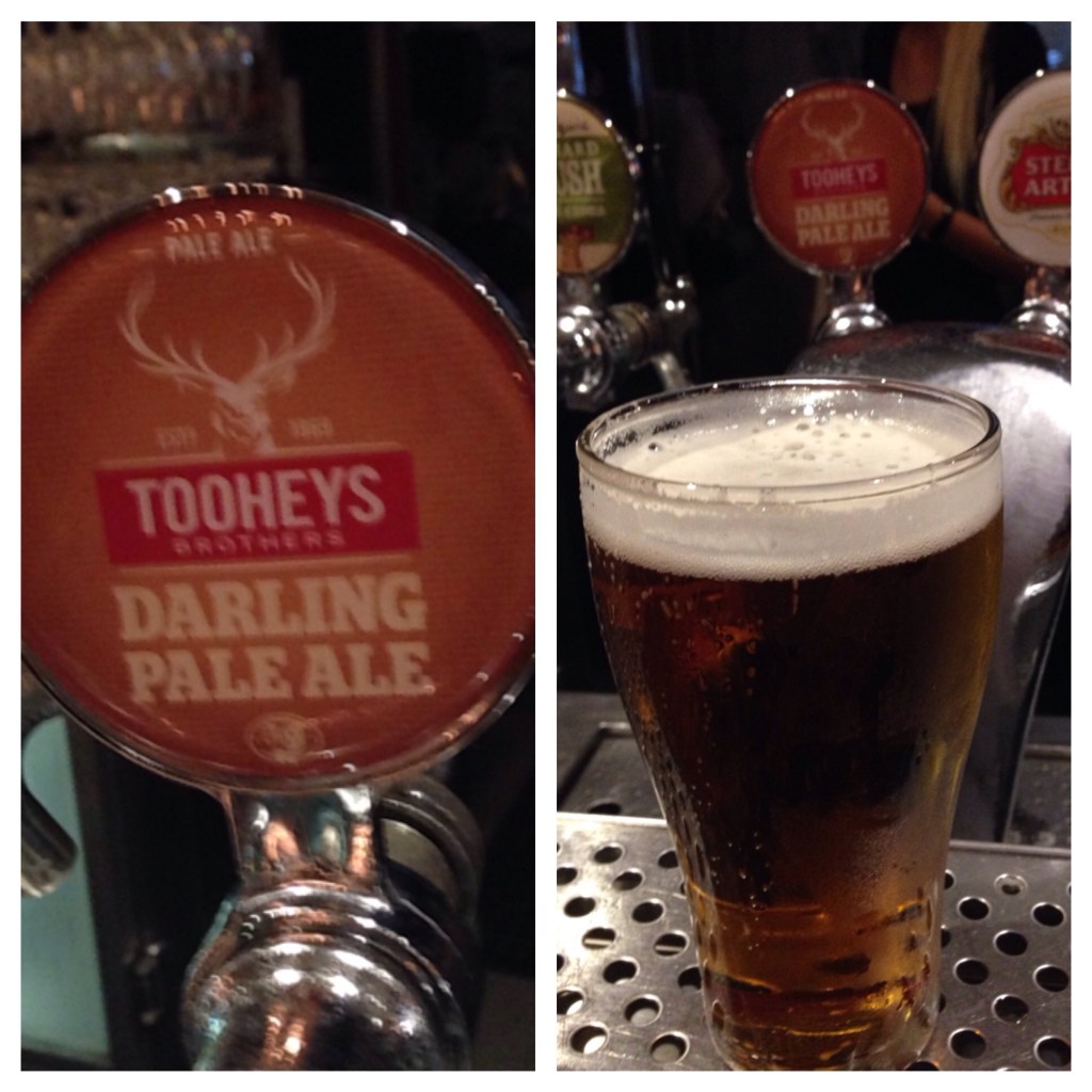 Forced to drink at the lamentable Martin Place Bar for a work function. Not expecting anything special or new from the taps. Surprisingly got something new, but it ain’t special. Tooheys Darling Pale Ale is named after an old Tooheys brewery (apparently). Hopefully it didn’t brew anything this bland. I’m giving it go but there’s no smell and no taste – like none.
