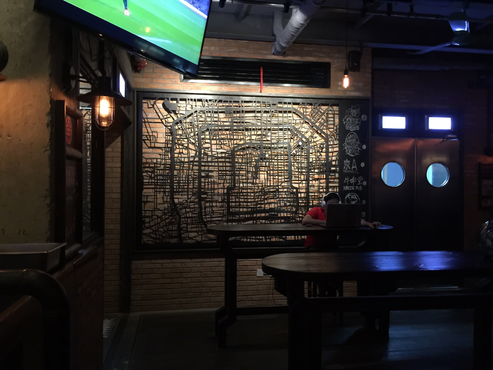All three venues offer 20 taps today are naturally dominated by Great Leap offerings. There is good camaraderie between the Chinese craft brewers and Great Leap has guest taps, which variously supported Boxing Cat, Monkey Bar and Slow Boat. In the Xinyuan Lu outlet a huge laser cut steel map of Beijing shows the location of other craft brew outlets in Beijing.