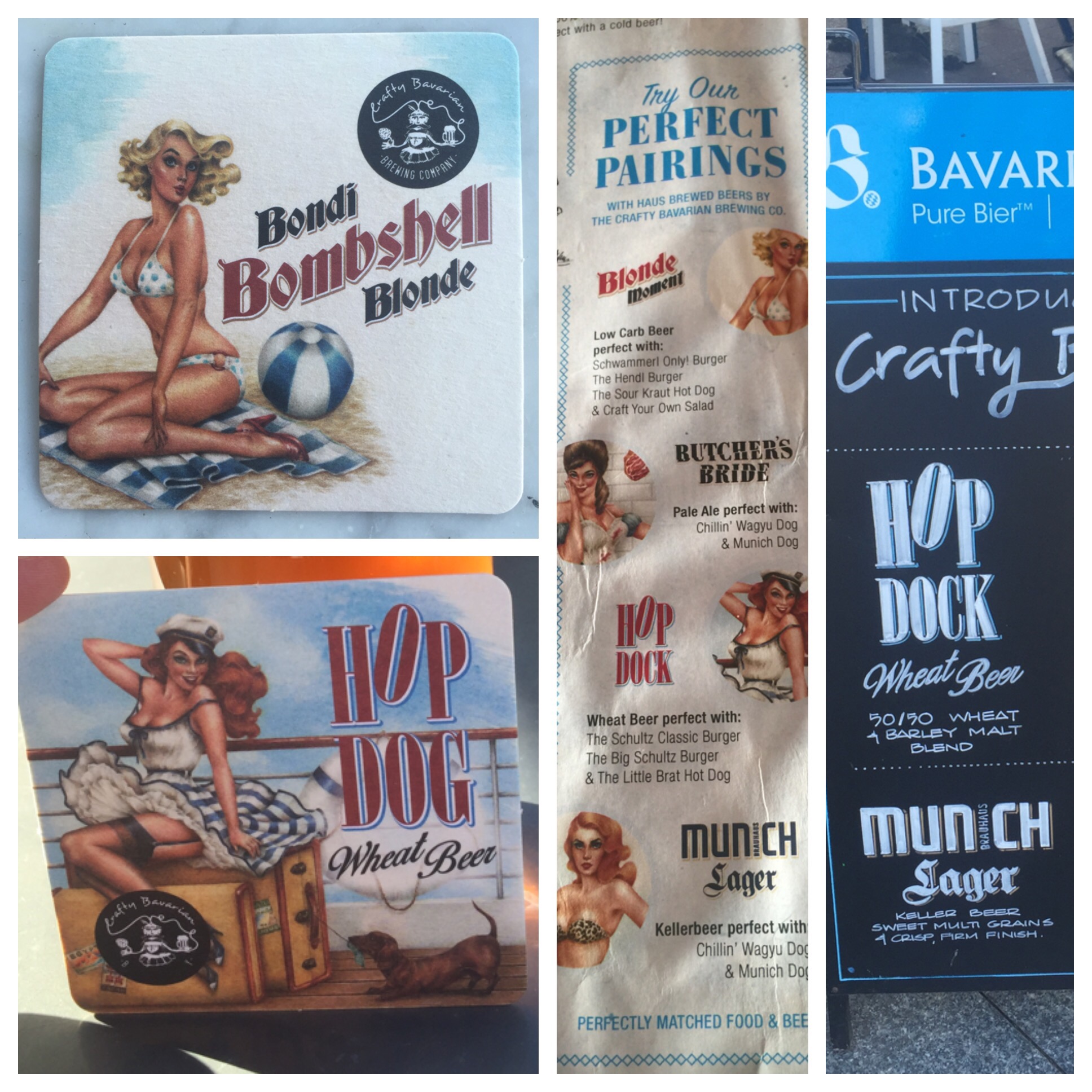It’s s remarkable tribute to the influence of the craft beer movement that a restaurant chain that has based its value proposition on beer has felt the need to expand its range of malt beverages to include craft beer. As always Brews News gives the detailed low down, but apparently the customers wanted it. I don’t mind the occasional Bavarian Beer Cafe experience. I love a Dunkel and the tasting plate or Schnitzel is a good honest feed. I’d never think to say “hey, love this but you should introduce craft beer”. I’m not visiting Bavarian for that. The range is brewed by two contract Brewers in NSW and Victoria, though I’m not sure about the Munich Lager (surely that’s German brewed). The range is nice and safe – low carb lager (craft?, but I quibble), a pale and a wheat. Modest IBUs and comfortable ABVs. Nothing challenging here, but very drinkable beers. The Tagline is “After 500 years of pure Bavarian brewing traditions, we’ve decided to reinvent craft beer – the Bavarian way. “. Yeah, in Sydney! It must be tough to name beers. With 10s of 1000s of them around, it would be challenging. Crafty Bavarian’s website invites you to “meet the ladies” (aah, there’s the cleavage) – who would seem to have had some name changes very early on. “Bondi Bombshell Blonde” is Blonde Moment and “Hop Dog” has become Hop Dock (huh?). Thanks to BotF UnTappd follower Aaron for pointing out to a rather sleepy correspondent that a certain South Nowra brewer may not have been so pleased about this. I seem to recall a Bondi Beer from a few years ago as well. Well, I’ve got a couple of rare coasters, the majority of which will be in s shredder no doubt.