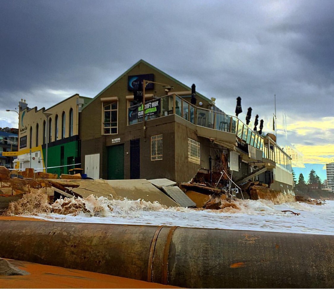 A high profile casualty of the “East Coast Low” was the Northern Beaches best craft beer venue – The Beach Club Collaroy. As you can see from the above photo, the balcony which provides Sydney finest view with a crafty has collapsed. Much of the beach over which the club’s balcony and bistro looked has disappeared. Early days for the Club – but hopefully the damage is repairable and they’ll be serving crafties again soon.