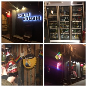 Between NanluguoXiang and the School Bar, my brother and stumbled across a bar in an alley. We spotted a cocktail neon out of the corner of our eye and discovered Chilli Crush. What a surprising beer oasis! It is probably better known as a lesbian leaning bar that serves very hot food, which only became apparent when I took a photo of a unique beer from Spain (see above). A conversation with a lovely but puzzled bar maid confirmed what the bar’s posters were indicating. They admired our enthusiasm for a fridge that stocked Tuatara, Garage Project, Rogue, Founders and Euro stuff to name but a few. Well priced too. A worthy detour before going to the Dongsi 8th Slow Boat venue.