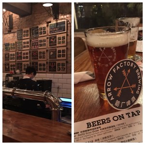 The first floor is where the action is. 14 taps – all Arrow (I think). There’s bar seating, high benches and stools and tables. Good sound system and wifi as well. When I visited their first venue in 2015, their range was tight. Now Arrow’s stepped it with barley wine, Rye PA and Imperial Amber amongst the new types. The merch is the most reasonable in Beijing. Great thought has gone into the label designs for each beer and the price is right.