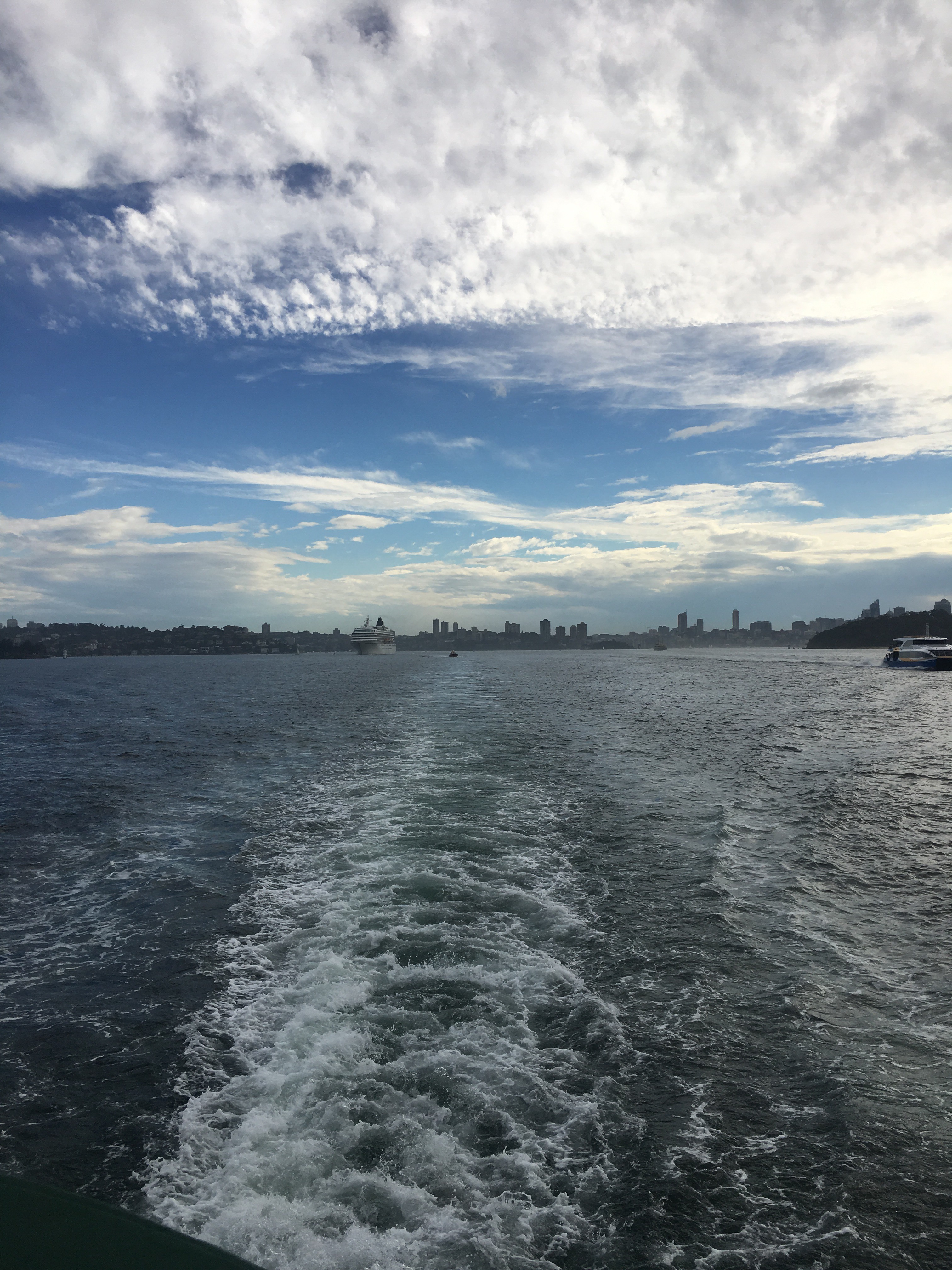 Great afternoon on the harbour with two big boats in. Great to chase one down the Harbour and pass it.