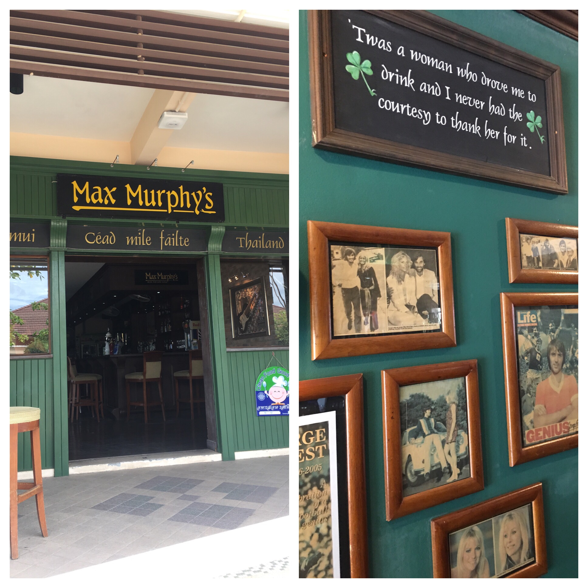 Congrats Cecilia and MichaelThe last thing I expected as walked towards the departure lounge of Koh Samui airport was a novel beer experience. Max Murphy’s is an Irish Pub about two hundred metres from the security check in. Whilst small it ticks all the Irish Pub boxes – Sentanta, Guinness and Kilkenny on tap and a George Best news clippings display, which was museum quality.