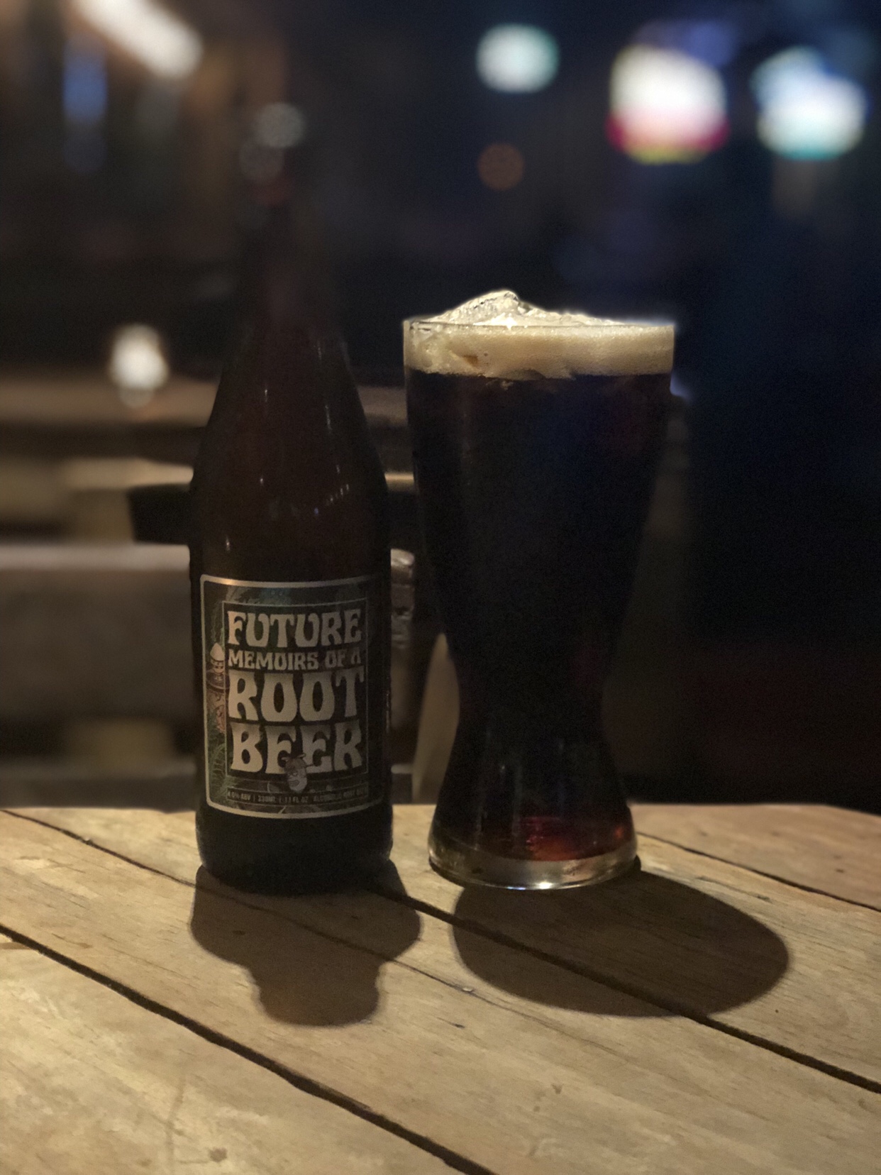 I like root beer or sarsaparilla. It is a polarising drink, but I’m a fan. Was very pleased to see an alcoholic version behind the Tiki Bar that is Jack & Bones. Down a flight of stairs in Flinders Lane, they’ve done a great job with the beach/Tiki look. Future Memoirs of a Root Beer is made by the makers of Doss Blockos and F&$k the Rent, East 9th Brewing. Nice job on the beer. I drank over ice as recommended.