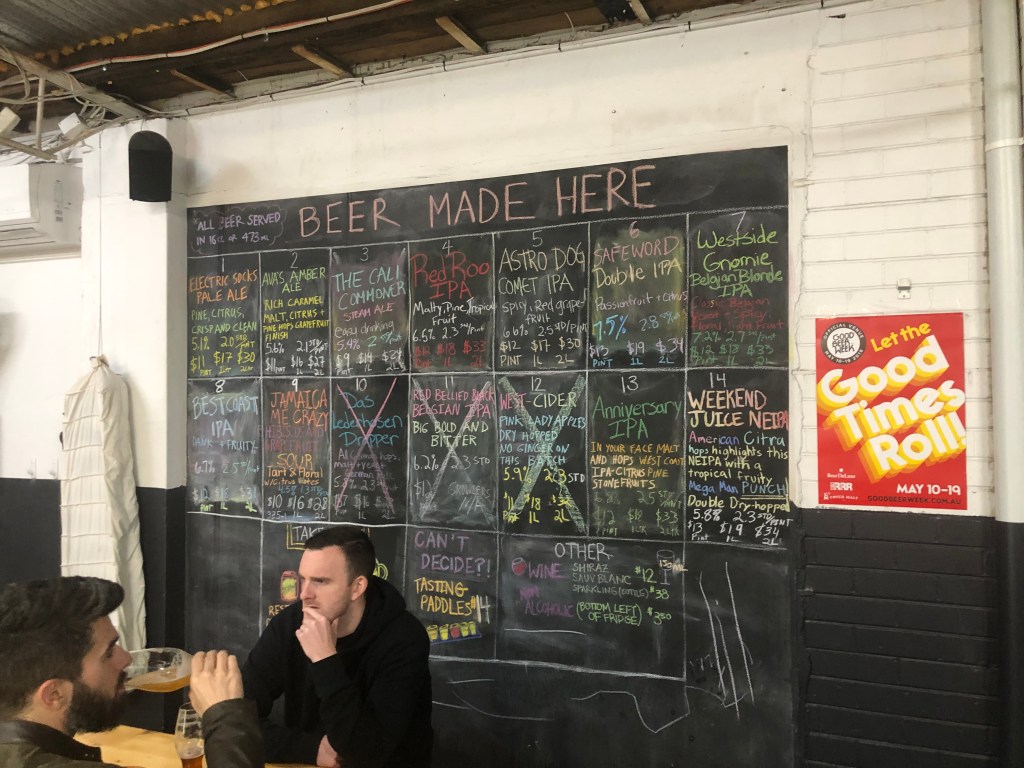 The vibe is good. A big screen plays US sport. People drop in to get takeaway. The staff are friendly and Casey wanders around and is happy to chat. Opening hours are 12-8pm Thursday to Saturday and 12-6pm on Sunday. The new digs will be bigger and I hope he fills it to the brim. One of the more unassuming but wonderful beer experiences I’ve had in Melbourne for a while.