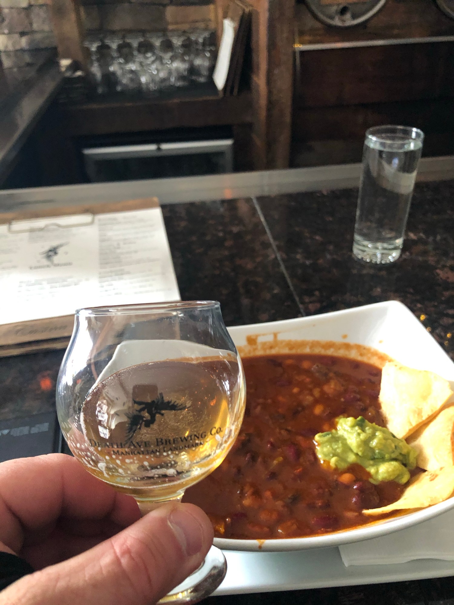 The area is quite chic these days and the Death Ave Brewery Co is a very stylish venue inside and out. Upmarket food mostly, but when I see Chili on a menu, it is game over. Tasters are offered and there’s 6 beers to choose from. Apparently brewer on the premises, but there’s no sight of Brewing equipment. Next door there’s a taproom, but we were too early for that.