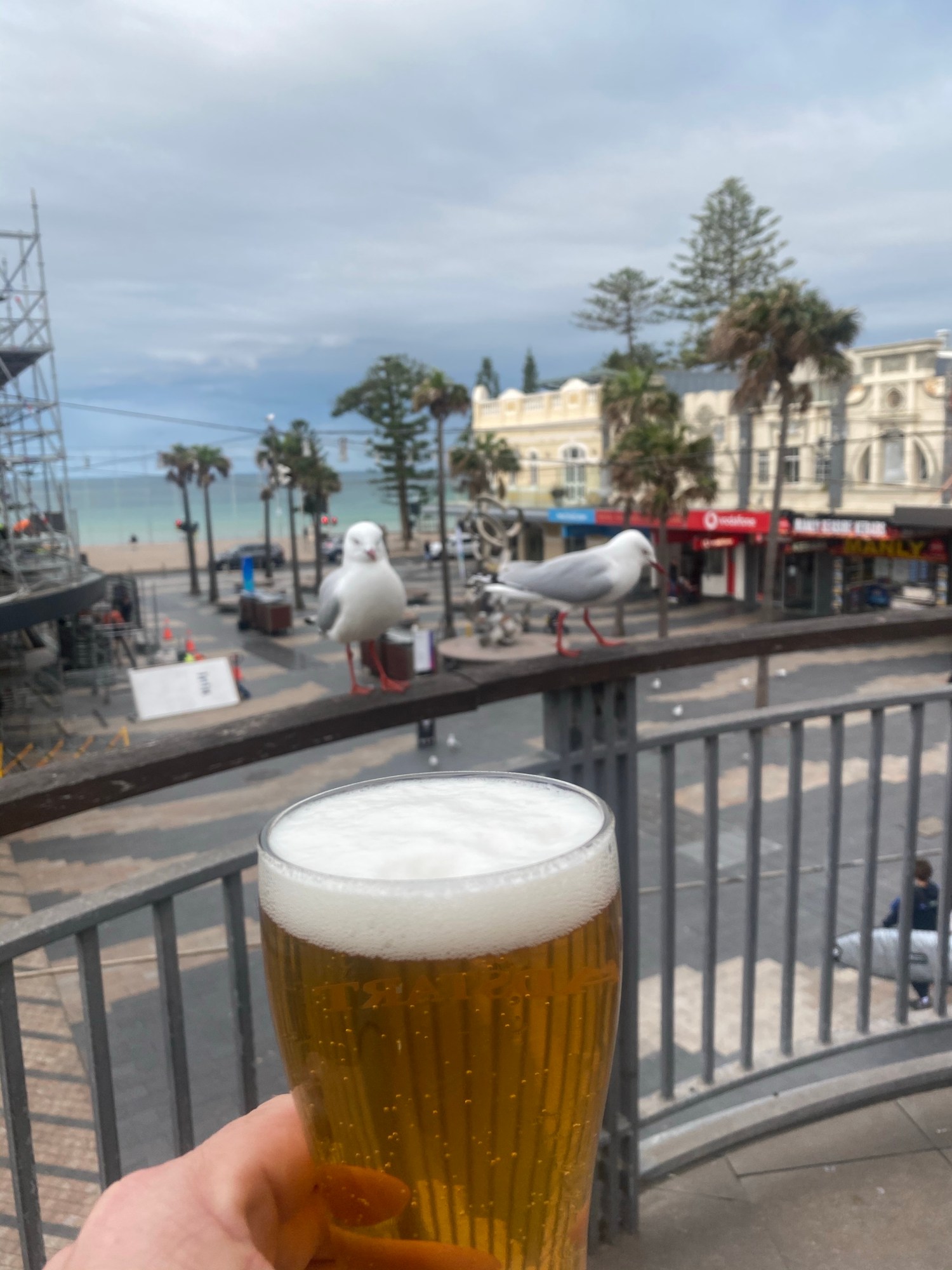 So Manly is emerging from the COVID19 slumber. On the second day of the “50 people rule”, Sydney has turned on a freezing day, but that hasn’t stopped people patronising those venues that have chosen to open. Straight back into it is the New Brighton Hotel, which has opened two levels – the Corso Bar and 33 Degrees. It feels like 33 degrees Fahrenheit on the balcony of 33 Degrees but a view is a view.