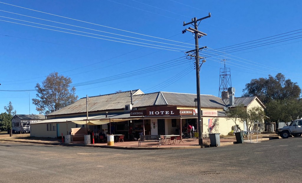 Your correspondent made the trek to Walgett to visit a daughter working in the hospital up there. There’s no pub in Walgett and the Sports Club and RSL haven’t reopened. Luckily the publican of the Bucking Bull Hotel in Coonamble told me about the Carinda Hotel.