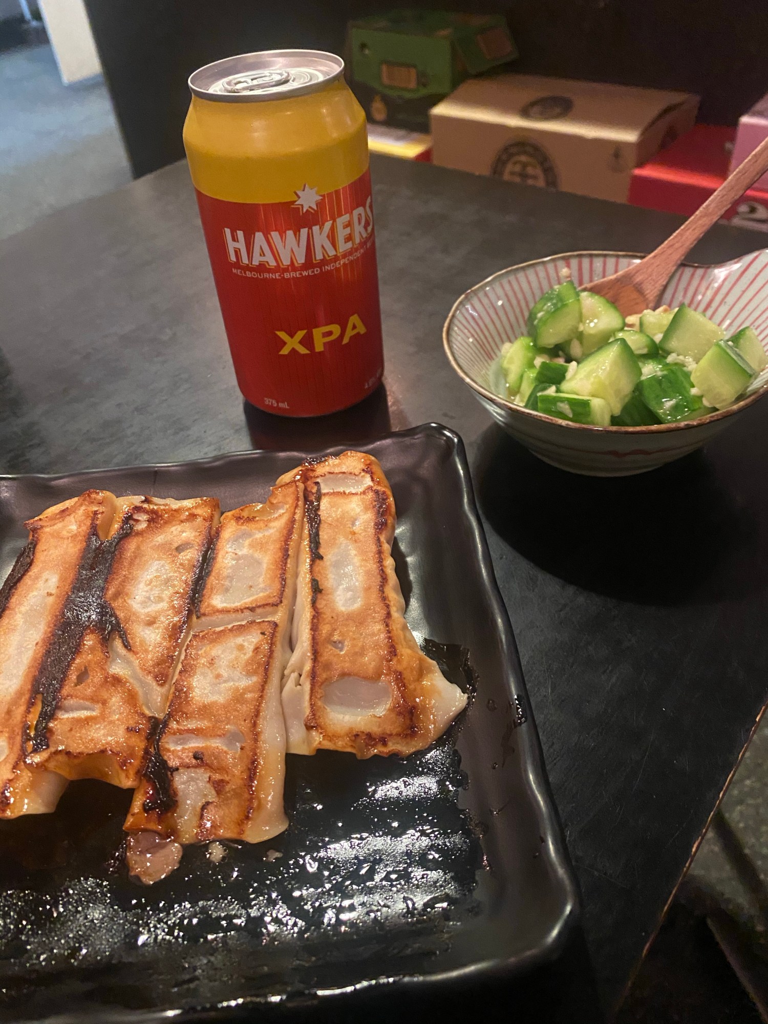 I tried the beef dumplings. Great. And the smashed cucumber salad (a personal favourite) is as good as I’ve eaten anywhere in the world. Washed down with a Hawker XPA.