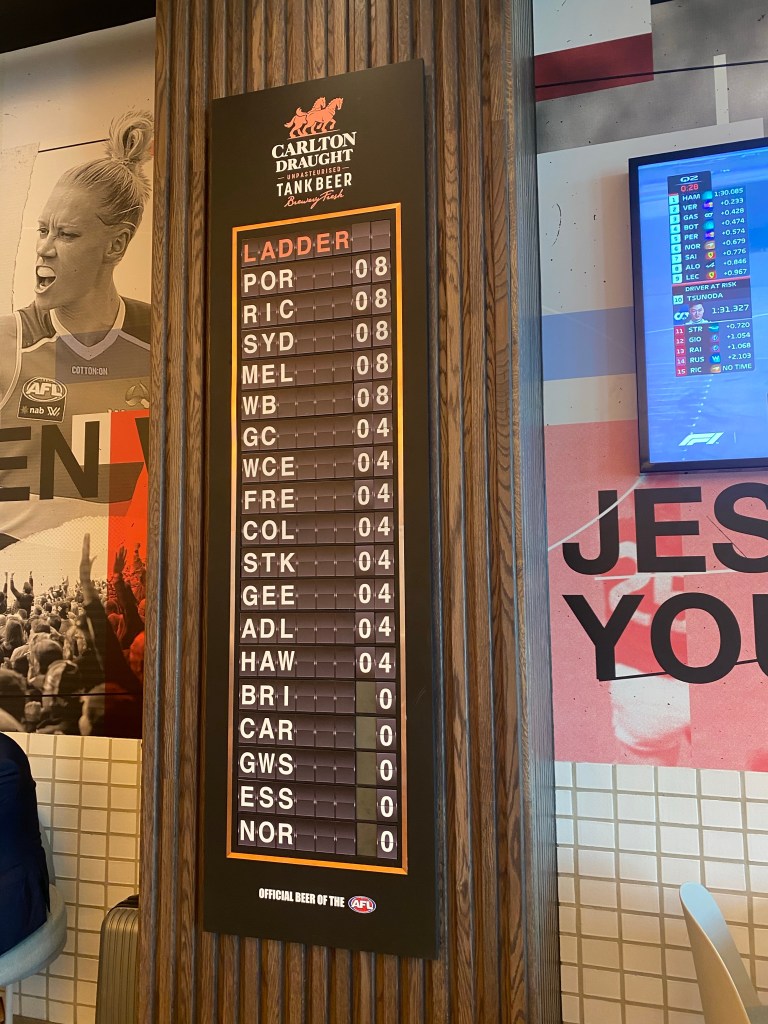 So I’m back in Melbourne with a short window of time, and again the AFL Kitchen & Bar caught my eye. Big and bright – it is hard to miss. For me, though it is a Oncer. If I’m going to pay $15 for a pint, I’ll go to Stomping Ground T3. I reckon the only time I’d return is for the footy – if a game was on and I was in the airport.