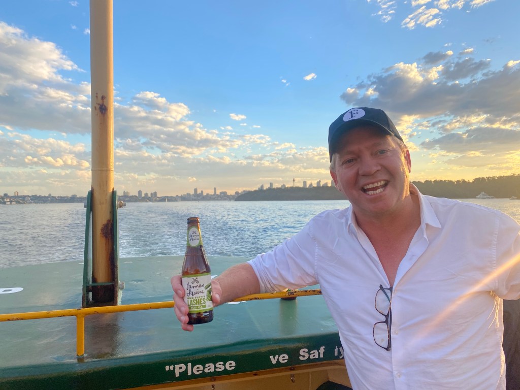 So it is never surprise to cross paths, and there’s boarding the Friday Ferry. Trap for young players – Luke had one lukewarm stubby of 150 lashes. He gave a longing glance at #3 and my six pack – but that is a major breach of etiquette. Luke’s mobile is one of the hardest working phones in the business and we only had 15 minutes to ask the important questions.