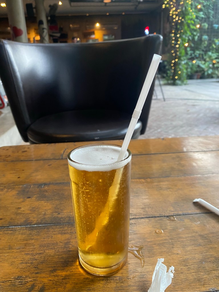 This is a fabulous venue with a big outdoor space with shade and industrial fans taking the edge off the heat. “Bintang?”, I tentatively asked. Never a nod or a yes, but I was taken to a table and served a glass of amber liquid with a straw. I took a sip. The waiter raised a quizzical eyebrow. I nodded that it was satisfactory and that was that. A steady flow of glasses with straws ensued