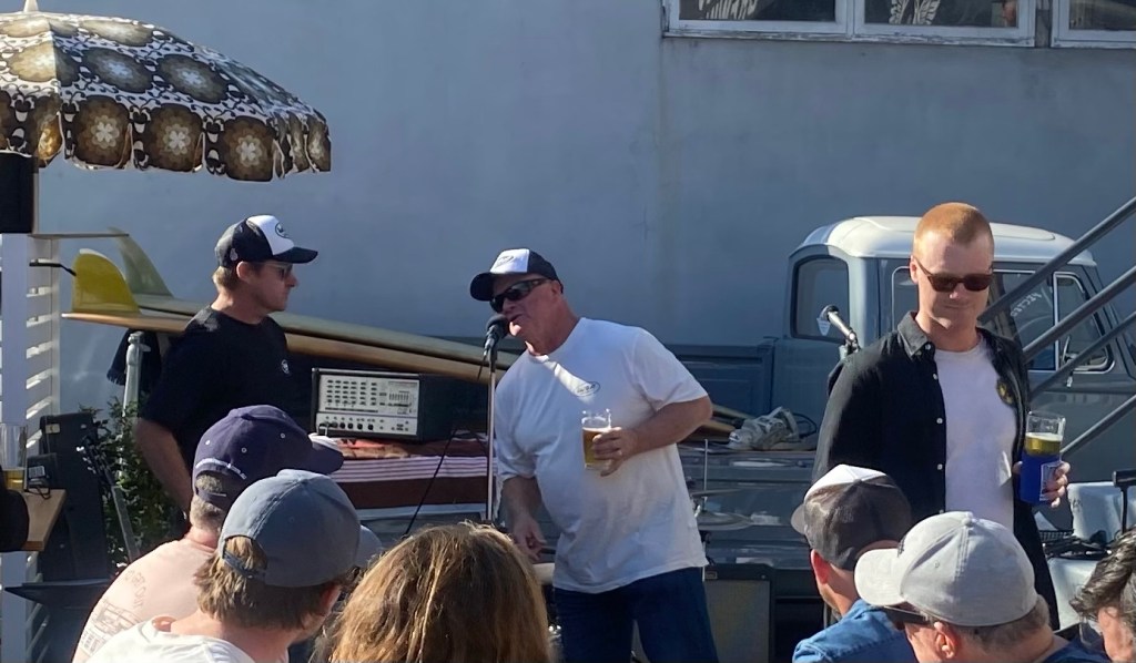 The latest industry to boom in Brookvale is beer, so it makes perfect sense to blend the past and present into one concept. SurfCraft Brewing Co plans to make one beer that pays tribute to each member of the Brookvale 6. First cab off the Brookvale 6 rank to be honoured is particular pertinent to many of the Back of the Ferry inductees, including those that attended the launch. So frequently do some us visit Bennett Surfboards, a visit is often referred to as “Going to Church”. And contributions to the collection plate have been generous over the years.