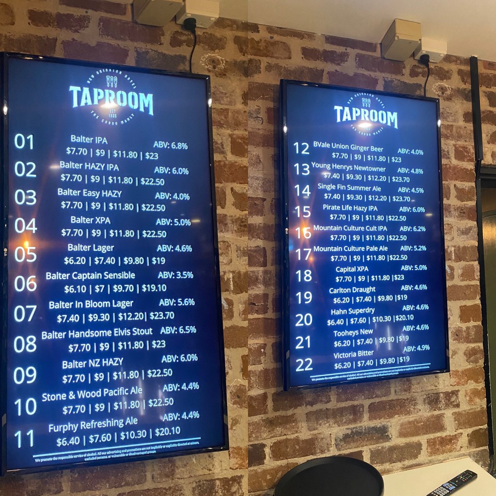 A couple of weeks ago, a substantial facelift and renaming of the first floor was unveiled. From now the space is known as Taproom – and there’s a few changes to the experience. You could be forgiven for thinking that you’ve walked into a NSW Balter taproom. Balter colours, livery and signage is everywhere and one part of the bar should be termed the “Balter Alter” given the exclusive presence of Balter taps. Around the corner, though, other brands are getting a look in, and I reckon these taps will be the ones that rotate fairly regularly.
