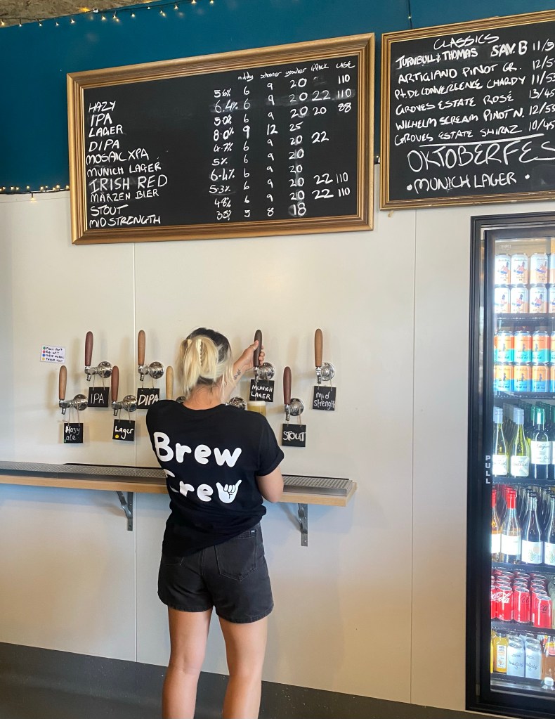 The boys highly rated the burgers and the on-site kitchen turns out reasonably priced beer food like wings and loaded fries. The Broulee Brewhouse has also well and truly thought through their merch. Their headwear range is particularly creative. I’m more about glassware these days and was glad to avail myself of a couple of schooners. The fridge is stocked with plenty of takeaway cans of their core beers including a Stout, a Mosaic XPA and a West Coast pale.