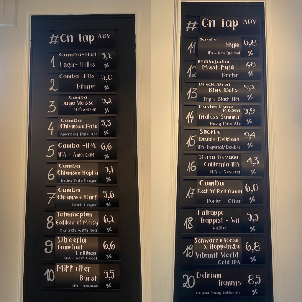 On the delightfully named Mendelssohn Staße, in the Westend district, you’ll find the Camba Taphouse Frankfurt. Plenty of outdoor seating and very friendly and helpful staff. 20 taps of eclectic beer from Germany and countries like Estonia. The tasting paddles are the go.