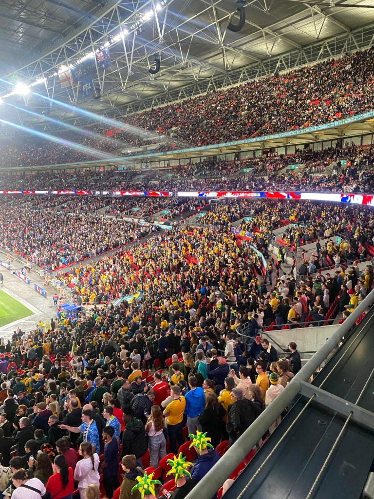 My last night in Europe was spent at new Wembley with my daughter watching this quite intriguing new generation of Socceroos play England at Wembley for the first time. Slightly bigger crowd for this fixture. Over 81,000 – and it was only a friendly. The Aussies were well represented with a strong and vocal contingent crowding a corner of Wembley stadium.