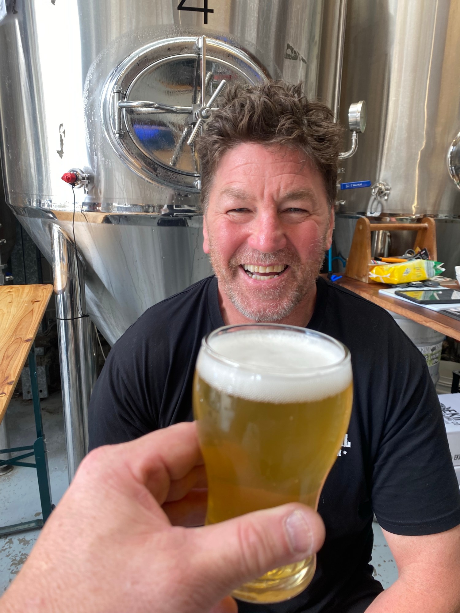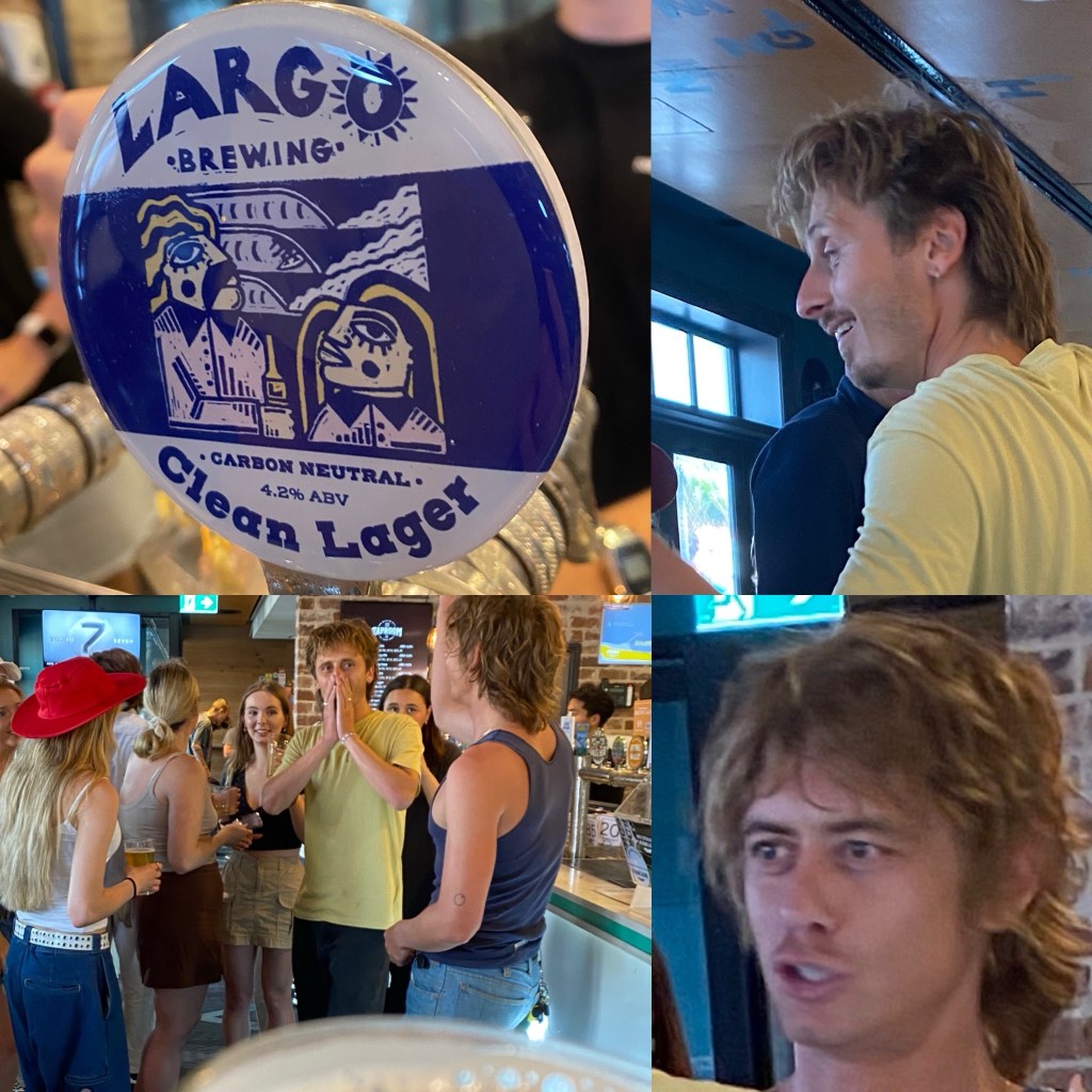 A week later I am on the first floor of the New Brighton seeing whether they’d introduced another unique. The Balter dominated venue is going good for uniques lately with an oddity from Capital, Mountain Culture and even Sierra Nevada popping up. Yesterday there was a tap head decal with Largo Brewing Clean Lager on it. Bewdy – unique. I ordered a pint, and got an entry in a raffle. Some young bloke who was being extremely chatty to all the patrons said to me “Let me see that first sip”. “Gees – he’s a pretty loose sales rep”. It was cold, wet and alcoholic. Absolutely fine, but I did think I preferred Spudd’s. Went to my table to look up Largo Brewing – and all was revealed. Largo Brewing is a JV with Pinnacle Brewing and the Leimbach brothers that are Lime Cordiale. The loose sales rep was Oli Leimbach – a self professed long haired hippy that froths nature whilst frothing beers. They make a 4.2% and 3.2% ABV version. Plenty of selfies were being had. My daughter was amused.