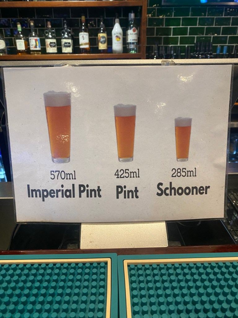One last thing. This is how to order a beer in Adelaide (above). I really don’t know why they don’t fall in line with the rest of the country. When I’m on a public crawl I drink middies. If I got a buck for every time I was asked “Mate, you know that’s not a big beer” when I asked for a Schooner – every 6th beer would be free.