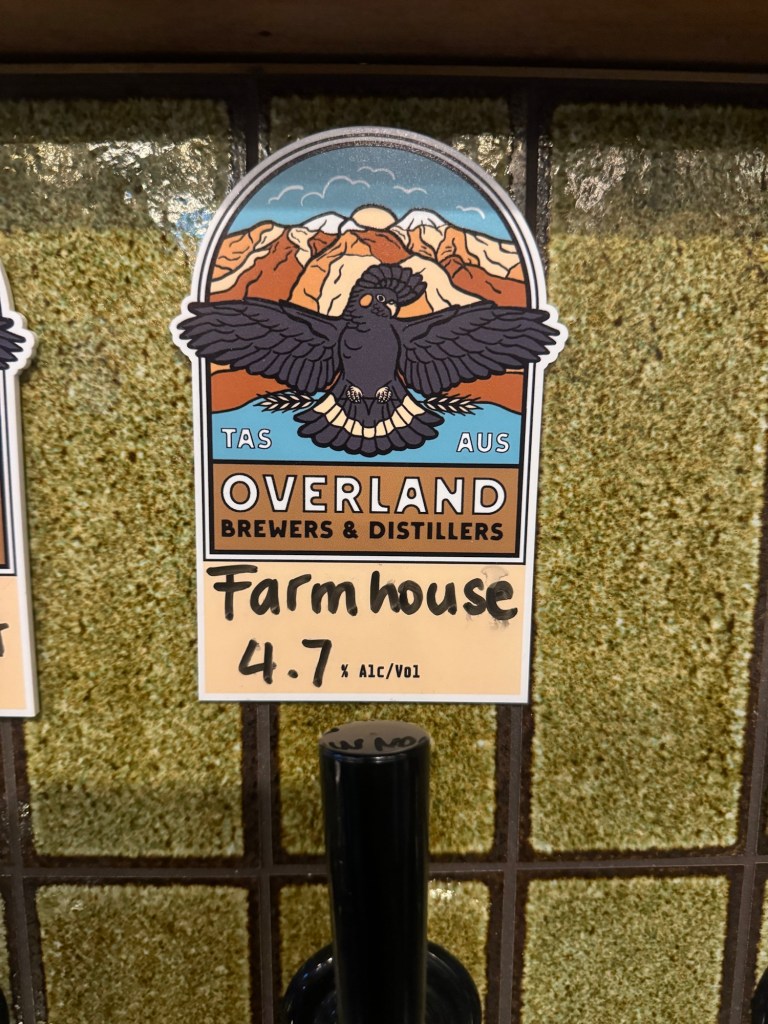A local gave a big wrap on Overland Brewers & Distillers. As my visit to the Salamanca Markets revealed the next day, there’s a ton of distillers in Tasmania. I stuck with beer and that was a good choice. The draught is a fine beer in a Kölsch style. The Farmhouse was a little underwhelming, but I’m looking very forward to the Double IPA which I bought as takeaway.