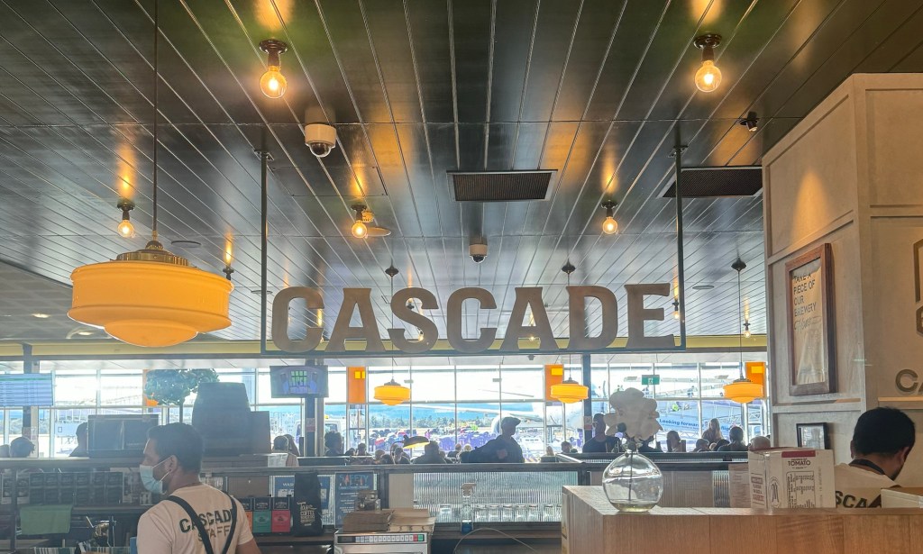 The Airport Bar has 6 taps with 4 Cascade options including their well regarded Stout. I didn’t see anyone order the Stout. I don’t believe I’ve been to a venue (other than OktoberFest) where the smallest vessel is 500ml – but that’s what’s on offer at here. Lucky I chose an aisle seat
