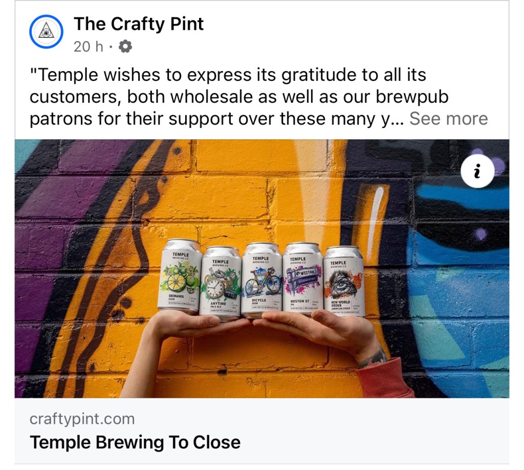 All the best to Temple Brewing folk. You had a go and for that we are grateful.