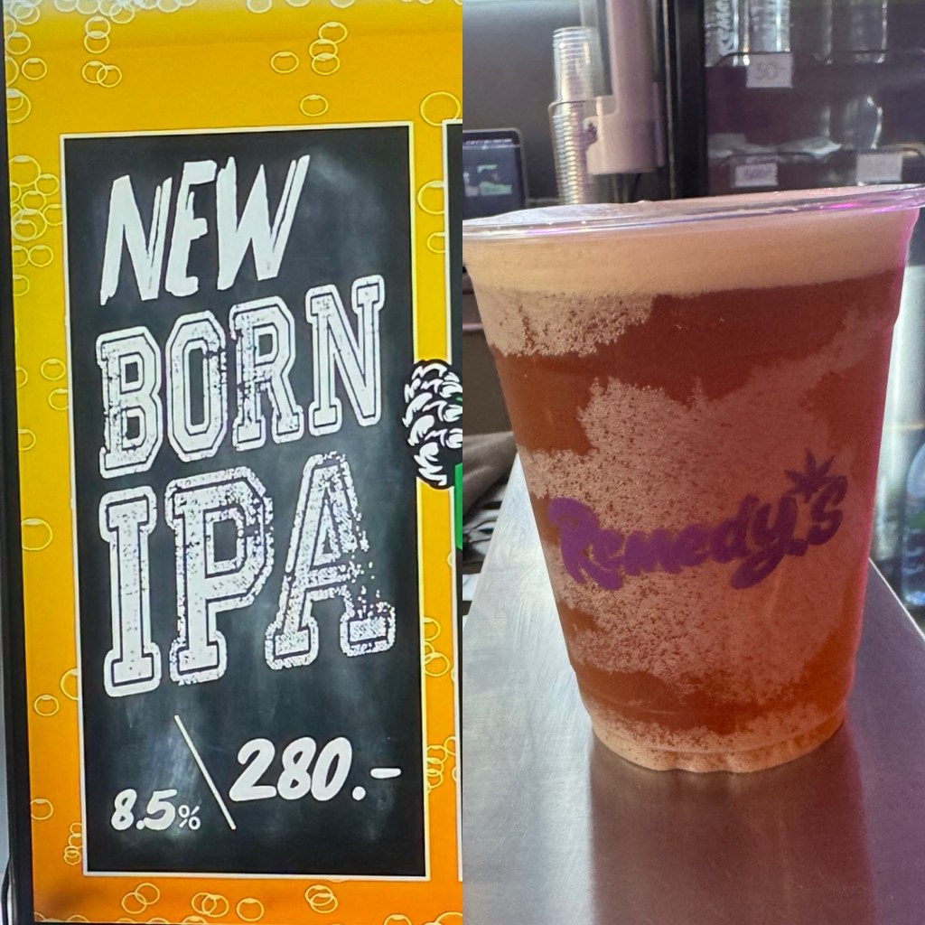 So then I opted for the “New Born IPA”, weighing in at 8.5% ABV. I avoided the Mead Cannabis – I’m adventurous, but I wasn’t going to take the risk of getting all whacky on liquid weed. 8.5% IPA – no problems – I know what to expect, but Cannabis after that Radler – who knows what the brewer did. The IPA was almost British in taste – certainly not an aggressive West Coast beer.