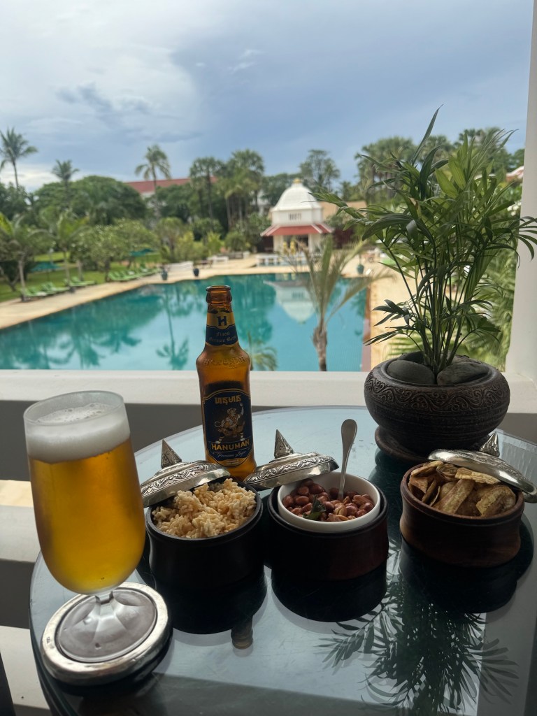 Across my various social media channels, I cop tips from time to time. “If you are in so-and-so, try so-and-so”. My good friend David (an extremely well travelled gent), suggested Raffles in Siem Reap. Now, I don’t mind 5 star, but I’m in Siem Reap the home of the 50c beer. But good on Raffles – they provide a Yum Cha of beer snacks to go with a USD$6 bottle of Hunaman. So there is some small value in paying the most overpriced beer of my trip.