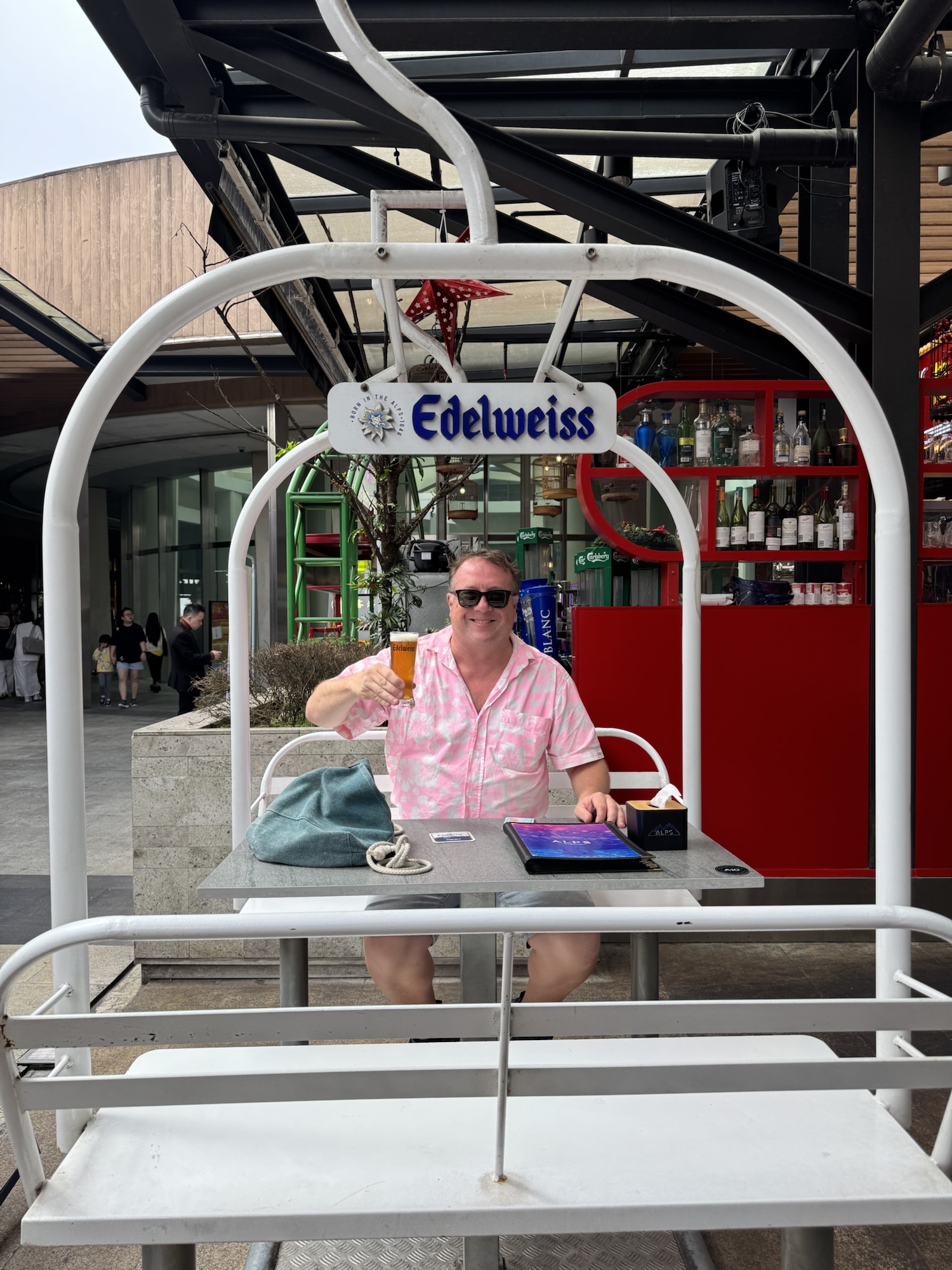 Equally odd is “Alps”, Malaysia’s “Highest Beer Bar”. It apparently does snow in the Genting Highlands, but a light dusting is as good as it gets. That hasn’t stopped an alpine theme bar that features Edelweiss Beer. I’m partial to a wheat beer and Edelweiss is a good one, which I tried for the first time on this trip.