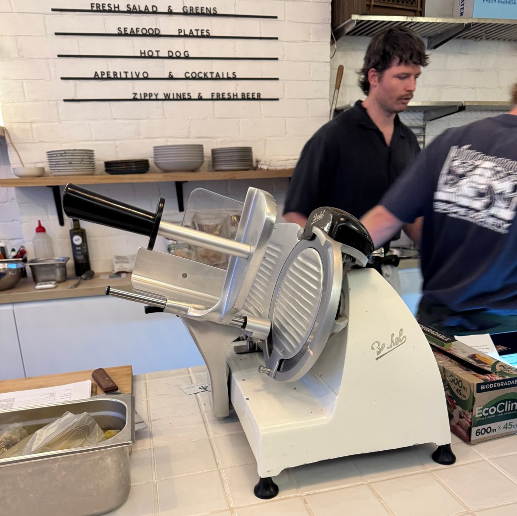 The food menu is eclectic “Seafood Plate, Hot Dog, Assorted Pickles”. I admire a place with a meat slicer on the counter. I bought a meat slicer from Aldi once. Used it twice. I’m sure Freshie Locale will use theirs more.
