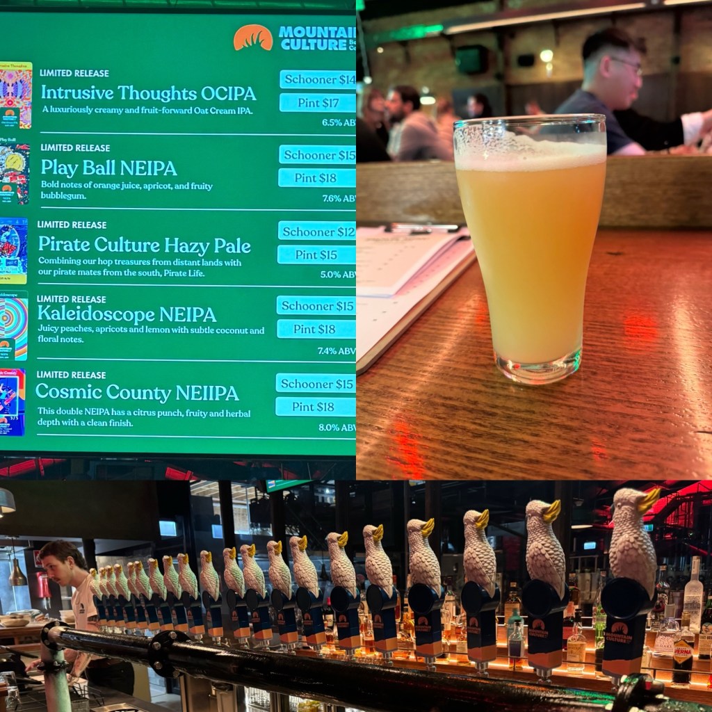 The fit-out doesn’t look too different, but the menu has completely changed and the beers are all Mountain Culture. Seven core beers and the rest seasonal and limited releases. Untappd unique heaven and thank heavens for schooners. Mountain Culture has never shied away from a solid ABV. All the beer is from NSW, but beers brewed onsite are coming soon.